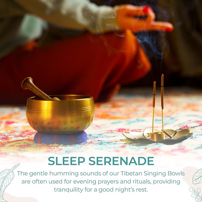 - COMPLETE SOUND HEALING SET – Includes a wooden striker and hand-sewn Tibetan cushion that allows the sound bowl to vibrate freely for longer, more soothing tones. Everything you need for meditation, sound healing instruments, or creating a peaceful space.