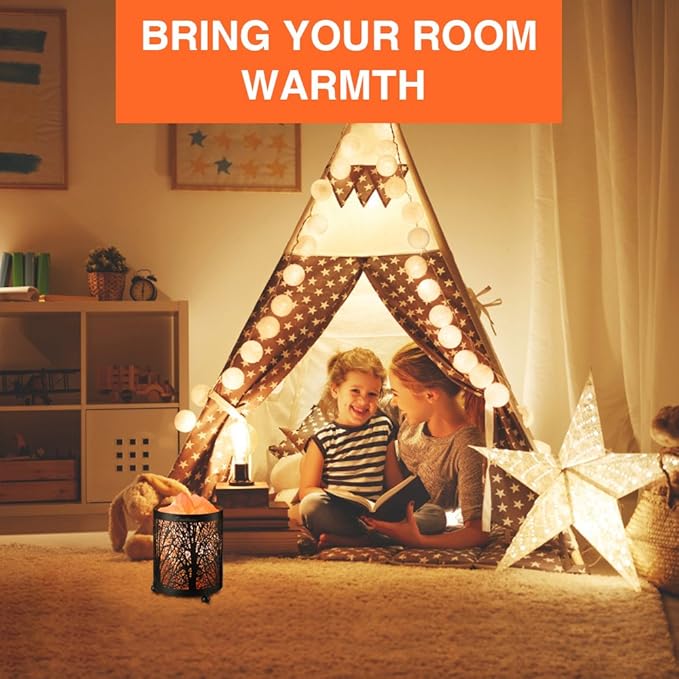 - ❤【PREMIUM METAL BASKET】The salt rock lamp equipped with forest tree design metal basket very good-looking, and it’s more durable, which supports you with a long lasting service life.