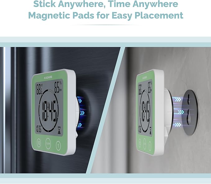 - 【 Efficient Time Management】Stay organized and save resources with KADAMS waterproof shower timer clock, featuring an LCD touch display, designed to help you keep track of your daily schedule.