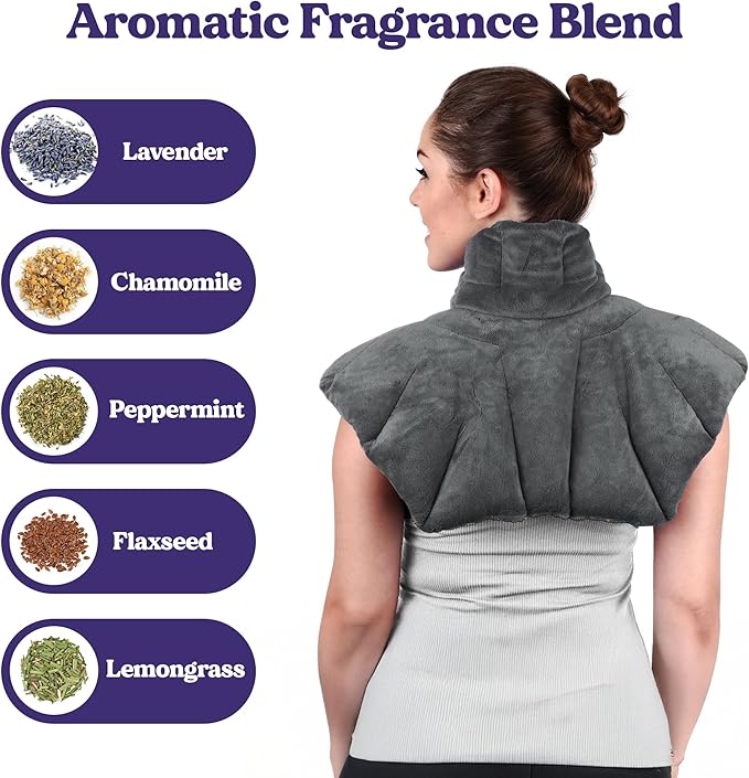 - Spa-Inspired Aromatherapy: Infused with lavender, chamomile, peppermint, and lemongrass, this microwavable heating pad surrounds your neck, shoulders, and back with soothing warmth and calming fragrance for spa-like relaxation at home