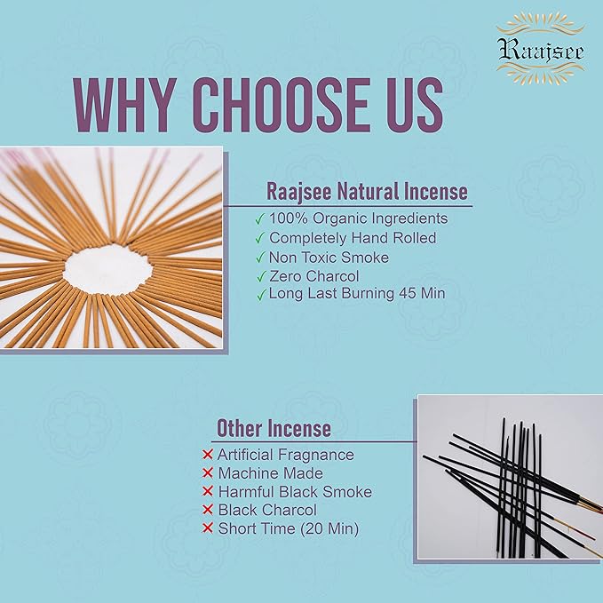 - PRODUCTION METHOD- Hand rolled in India with Indian traditional techniques which lasts longer.Raajsee Incent utilizes fair trade labor and environmentally responsible production methods to give you the best insenses around .We lets you be assured that it is free of nasty chemicals like charcoal and other accelerants