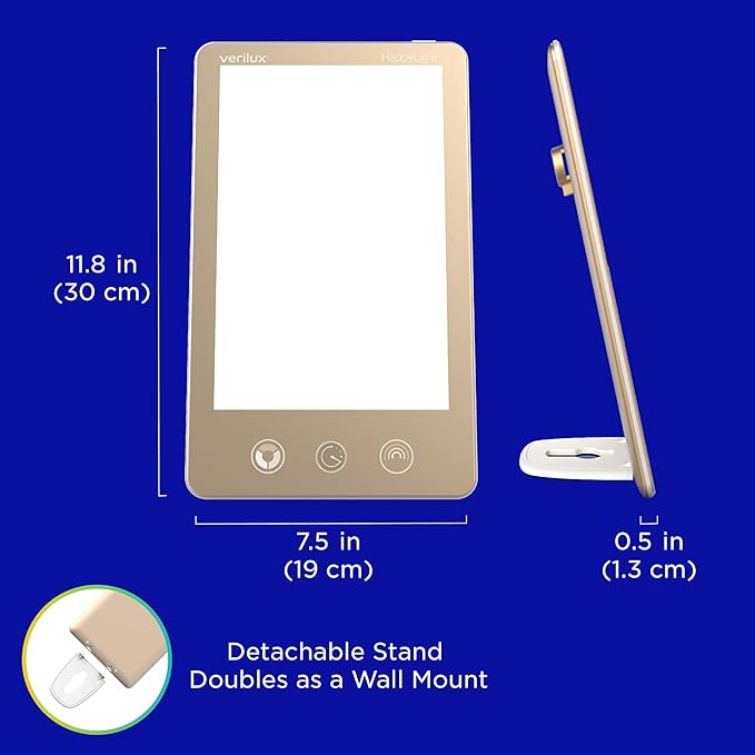 - Portable & Practical: The ultra-thin tablet design with detachable stand and wall mount makes HappyLight Luxe portable enough for use at home or on the go. It’s great for combating seasonal blues, insomnia, and sunlight deprivation for shift workers, office employees, seniors, or anyone in need of more sunshine.