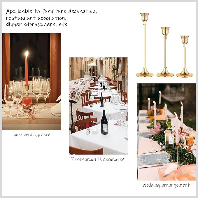 - 💕【 Stunning Contrast】Our taper candle holder set includes three different sizes to create a stunning display. Three different heights of candle stick long holder designed with European retro metal create an elegant visual effect and bring you a romantic atmosphere.