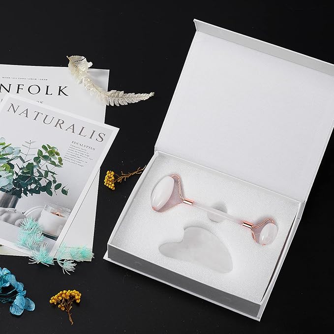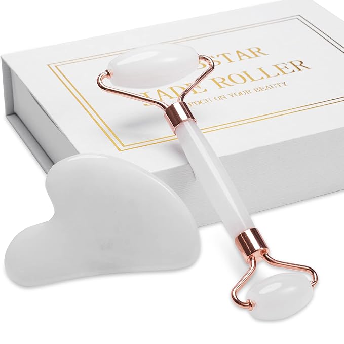 • 【Natural Jade Material】This facial roller gua sha are made of natural jade,which is crystal clear, beautiful color. The handle part of the jade roller, specially selected zinc alloy materials that will not rust to make.