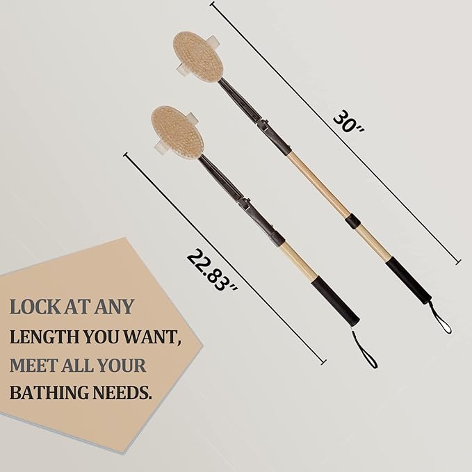 EASACE Long Handle Bath Body Brush & Lotion Applicator for Back Scrubber, Shower Brush with Soft Bristles for Wet or Dry