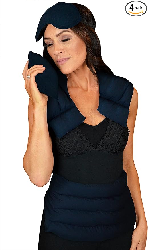 - AT HOME SERENITY: The full 4-piece set includes a wrap for the chest, neck, and shoulders, a belted lumbar wrap for the hips, abdomen, and lower back, an eye mask to relieve headaches and aching eyes, and an all-purpose aromatherapy pack