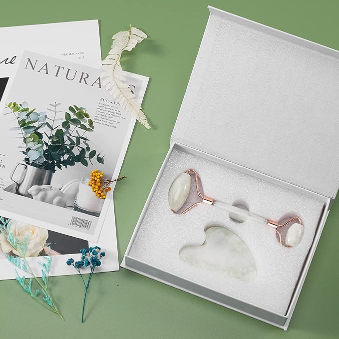 • 【Natural Jade Material】This facial roller gua sha are made of natural jade,which is crystal clear, beautiful color. The handle part of the jade roller, specially selected zinc alloy materials that will not rust to make.