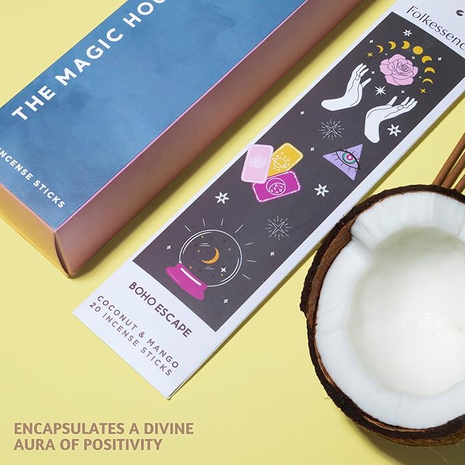 - Fragrance Notes – This incense pack combines uplifting citrus notes with breezy oceanic undertones with fragrances like coconut incense, mango incense, oriental aqua, ocean salt, green tea incense, rose inscents, geranium incense & orange incense. Suitable for meditation rooms, bedrooms, living areas, and even office spaces.
