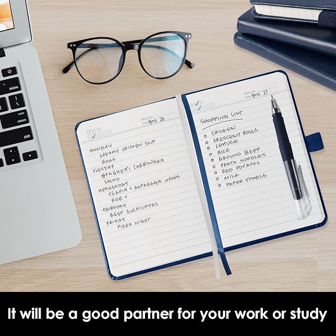 - 【Mini Journal Notebook】Each piece contains 3 small notebooks and 3 black pens, leather cover, strong binding won't crack. These small notebook journal for work Business Travel School Men & Women. There's a "date/page/weather/week" column on the top of every page.