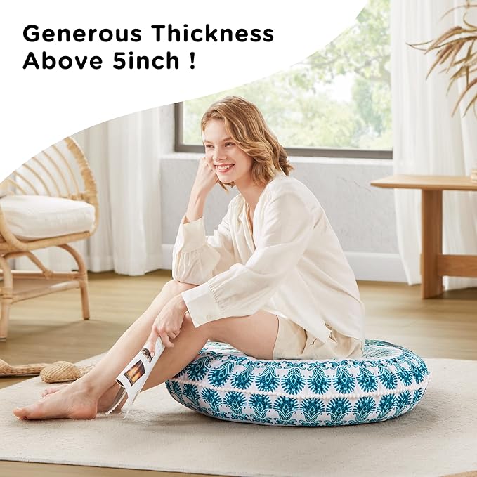 Codi Meditation Floor Pillow Set of 2, Round Large Pillows Seating for Adults, Bohemian Mandala Circle Cushion for Outdoor Fireplace Yoga Living Room, 32 Inch, Memory Foam Added, Aqua
