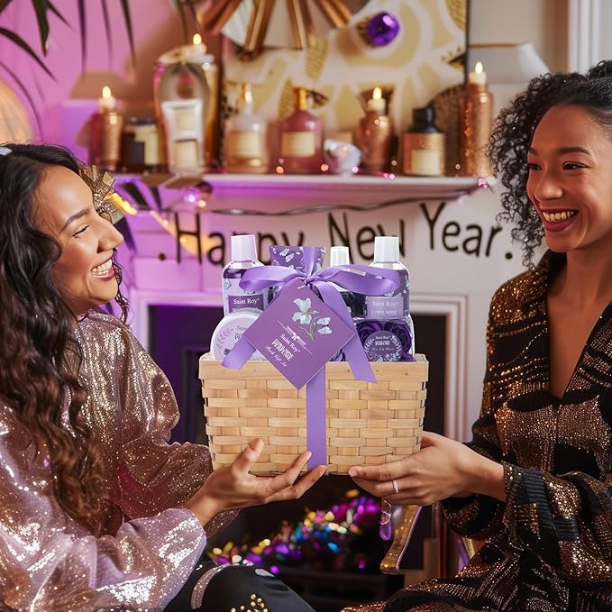 - BATH GIFT BASKET SET FOR WOMEN: The Natural & Sweety Scent Will Make You Feel Happy All The Day. Beautifully Wrapped & Packaged and Meet Everything You Need for a Good Home Spa experience. The 11 pcs girls' spa set offers the most luxurious and perfect bath experience