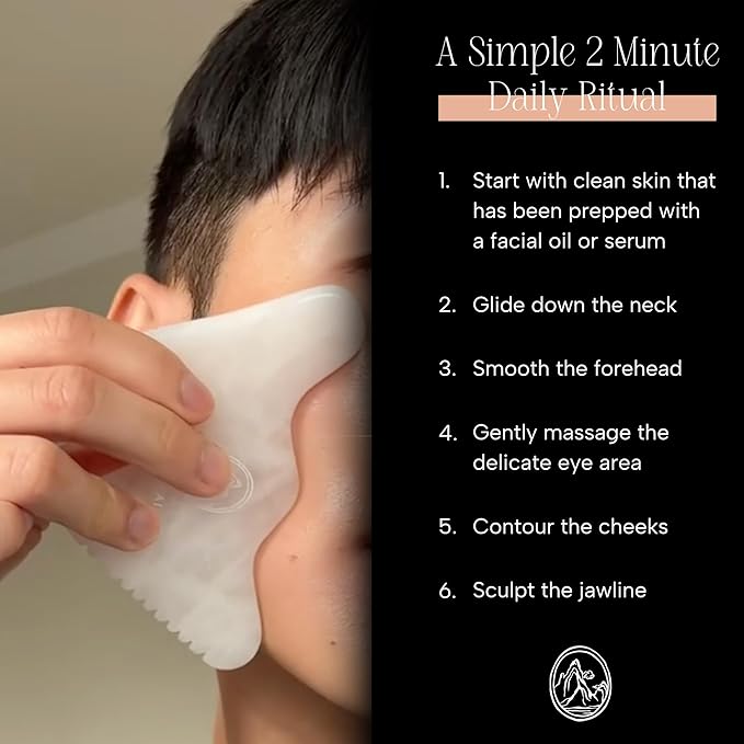 - PROFESSIONAL MULTI-EDGE TECHNIQUE: Use on clean skin with facial oil or serum for optimal glide. Each edge serves a specific purpose - use the Long Smooth Edge for forehead, Targeted Point for under-eyes, V-Edge for jawline, W-Edge for cheekbones, and Combed Edge for tension knots. The patented design targets every facial area with precision that traditional tools cannot achieve.