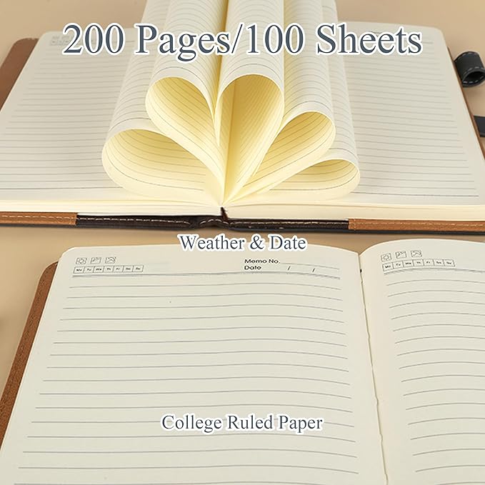 - 200 Pages Ink-proof Thick Paper Notebook: We use 100 GSM liend ruled paper avoids ink bleeding, ghosting and shading which is more than average paper. So you can write with most fountain pens, pencils and ball point pens. 200 pages diary notebook/100 sheets college ruled lined notebook papers, good for daily use. Perfect as journal for writing, travel notebook, business a5 notebook, teen journal, back to school gift.