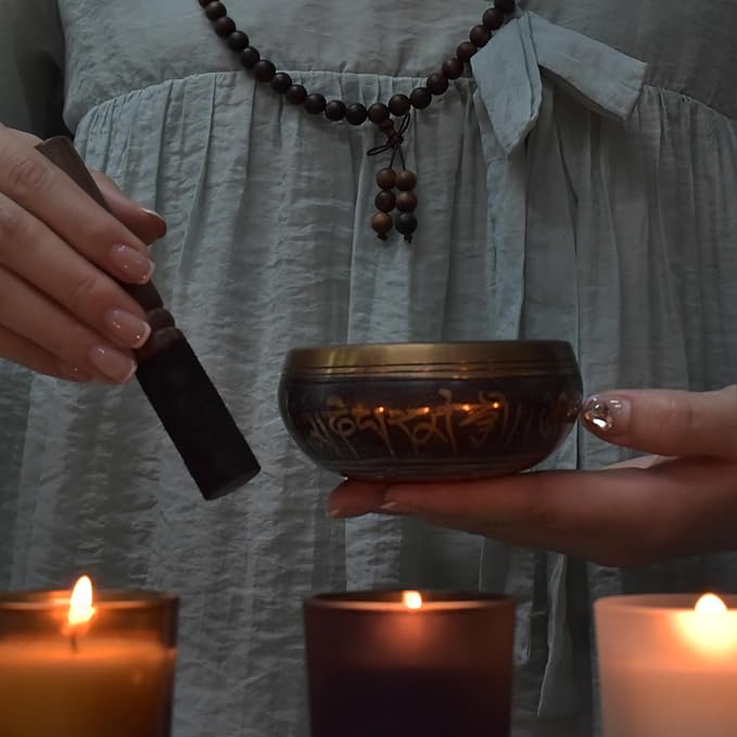 - THE COMPLETE MEDITATION SET: The singing bowl and cymbals creat a soothing ethereal sound that allows you to let go of all your annoyance and anxiety. Agarwood beads bracelet, known for their calming and grounding properties, providing a profound sense of tranquility and focus during meditation and contemplation. This set can enhance your meditation and mindfulness practice.