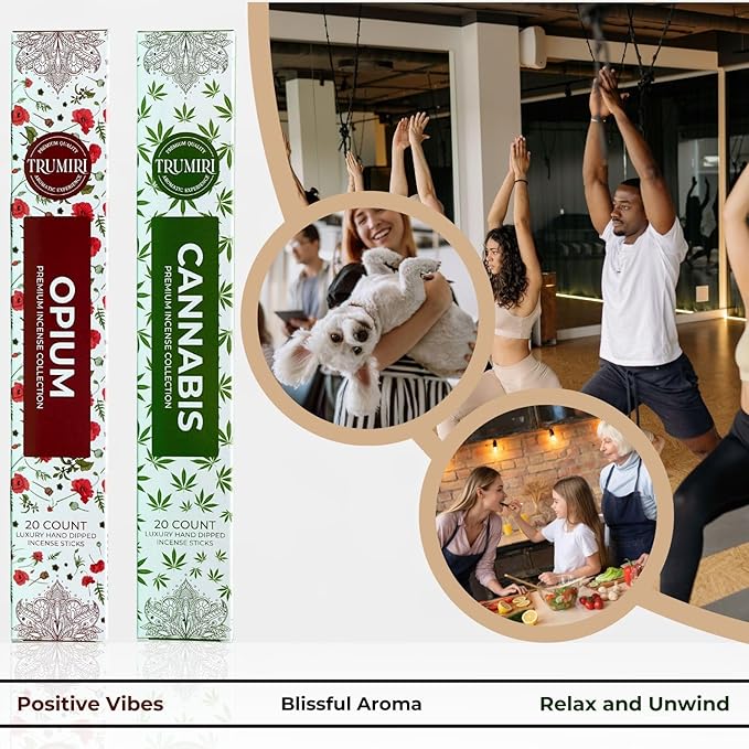 Trumiri Incense Sticks - Combo Pack of 40 Insence-Sticks - 20 Opium + 20 Cannabis - Insenses - Insents - Incents - Inscense - Incence - Incienso - All Natural Incense Sticks