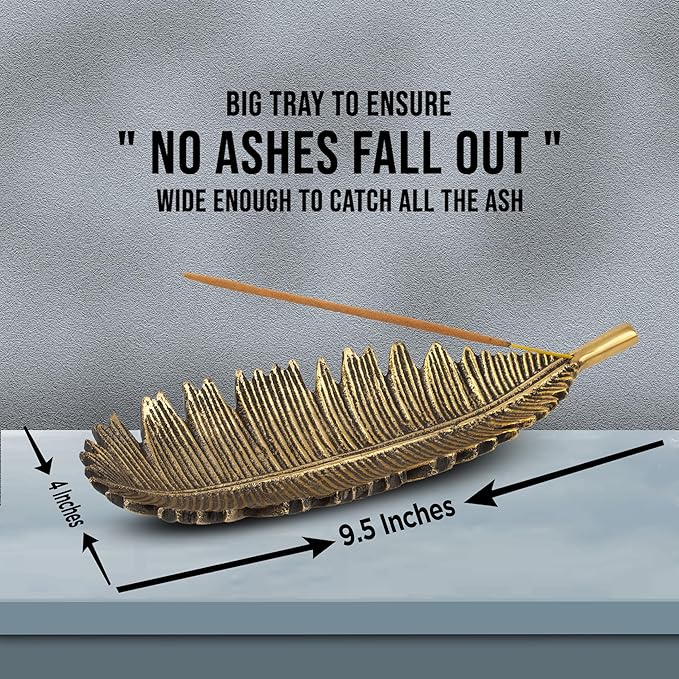 - FUNCTIONAL INCENSE HOLDER : The hole on the leaf's tail will make the sticks only towards to one angle, ensure the metal incense holder will catch all the ashes, has a Appropriate size, it's practical & decorative.Size 10x4 Inches