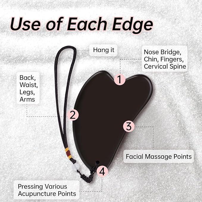 • 【Use of Gua Sha】Each side of the Gua Sha and Acupuncture Scraper serves a unique purpose for the face, eyes, neck, and body. Our Gua Sha set is much thicker so it doesn't hurt the skin and will work better. A small Gua Sha yields multiple effects – firming the face, reducing eye swelling, relaxing neck muscles, alleviating limb swelling, and acupressure point.