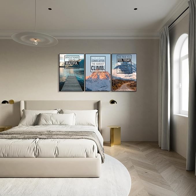 - Premium Quality Motivational Wall Art: Made from high definition, premium quality materials, these inspirational wall art prints are clear, dust-proof, non-fading, UV-resistant, and non-yellowing, ensuring a long-lasting, exceptional look for your home or office walls.