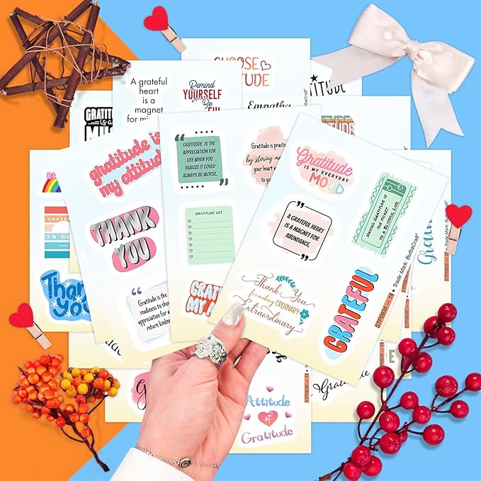 - STICKER SHEETS - gratitude sticker pack contains several sheets. Sticker sheets are less likely to get damaged or bent compared to loose, cut-out stickers.