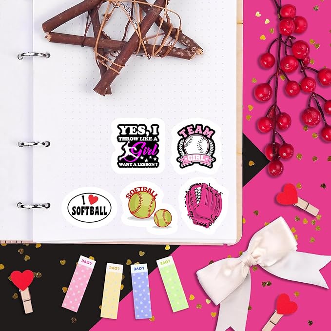 - DECOR - Perfect for decorating laptops, phones, skateboards, luggage, bikes and more. Use them as Softball stickers for girls party favors and Softball stickers for girls party decorations. Let your creativity run wild with our diverse sticker designs.