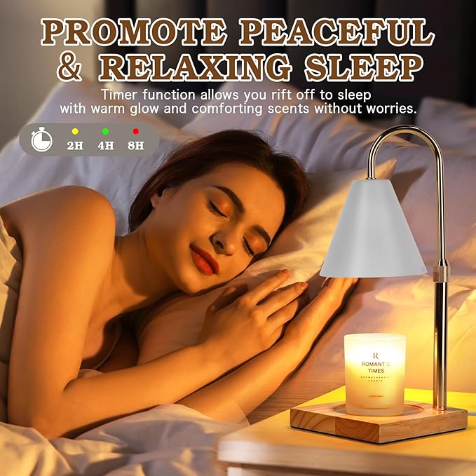 - Timer&Dimmable Controller: This candle burner lamp with timer is dimmable for meeting different ambiance needs. And it has 2 4 8 hours shut-off function. The brighter you set, the faster jar candles melts. It is also a beautiful modern home decor gifts