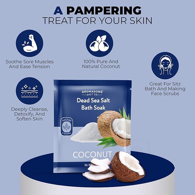 - AROMASONG Dead Sea Bath Salt 1 TIME USE essential products are 100% pure & Organic Coconut mineral salt that makes your Dry Skin like never before! can be used to relax sore muscles. Great for Sitz Bath, Hemorrhoid & for making face scrubs.