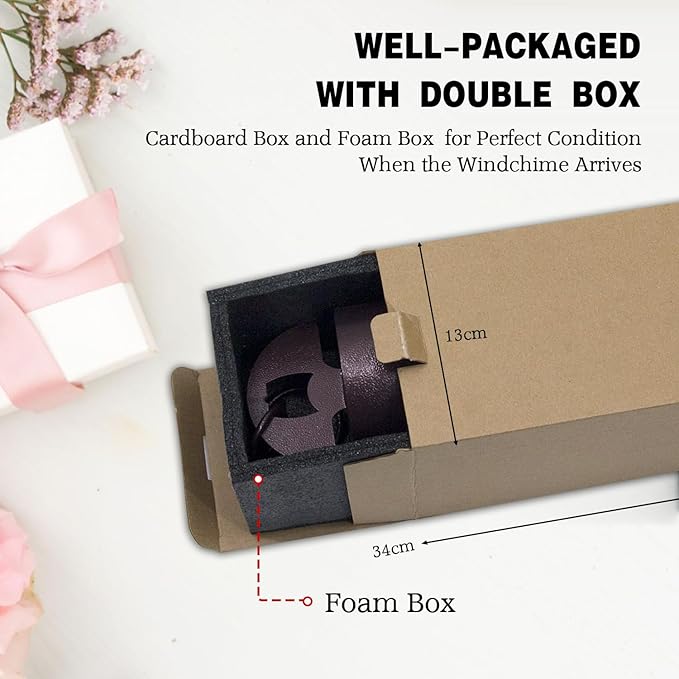 - Well Packaged Wind Chimes: Each wind bell comes with double packgae,inside kraft carton is a foam box, ensuring the integrity of wind chimes when they arrive.All we want is to offer better customer experience for those having interests in our products.
