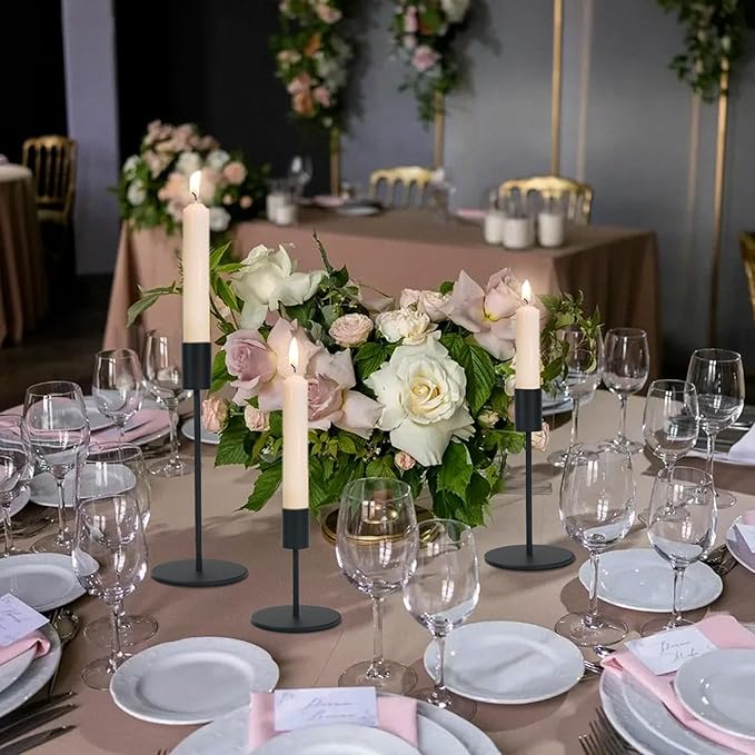 - [Size Information] The decorative candle holder bulk has an inner diameter of 0.87inch/2.2cm, suitable for any standard size (0.79"/2cm) taper candle; These candlestick holders are available in 3 heights, 3.94inch/10cm, 5.91inch/15cm, 7.87inch/20cm, which can create the visual effect of high and low undulating candlelight and give people a romantic atmosphere.