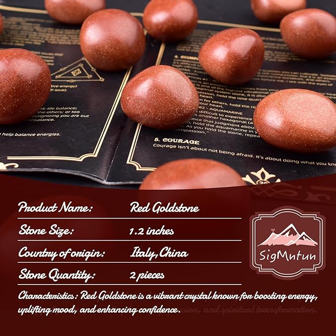 Polished Red Goldstone Crystal Stones - 2 Pcs of 1.2" Worry Stone for Anxiety, Pocket Palm Stone Super Large Handpicked Natural Tumbled Gemstones for Meditation, Reiki, Chakra Healing, Home Decor