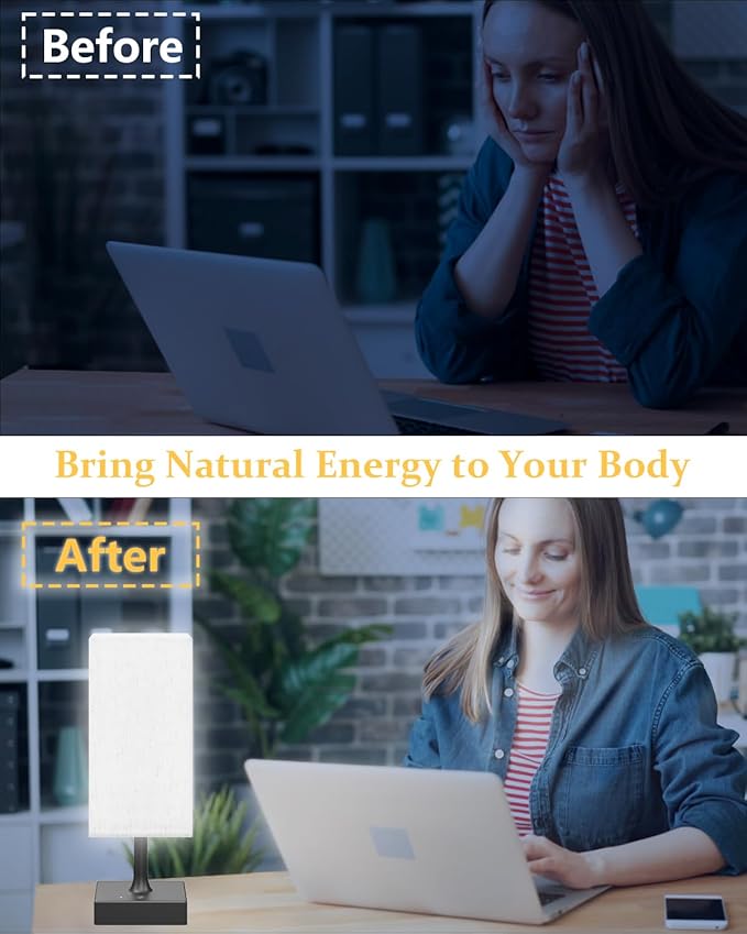 - 【360 ° ILLUMINATION & ELEGANT RECTANGULAR DESIGN】: This sun lamp features a delicate rectangular column design, providing 360 ° full-spectrum brightness, creating a peaceful and pleasant environment.