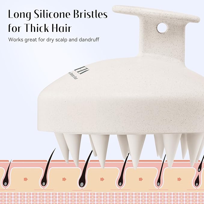 - Wheat Straw Design: HEETA shampoo brush is crafted from natural wheat straw and soft silicone bristles, and will not cause harm to the human body and nature. It’s an excellent alternative to ordinary plastic materials and helps reduce plastic waste