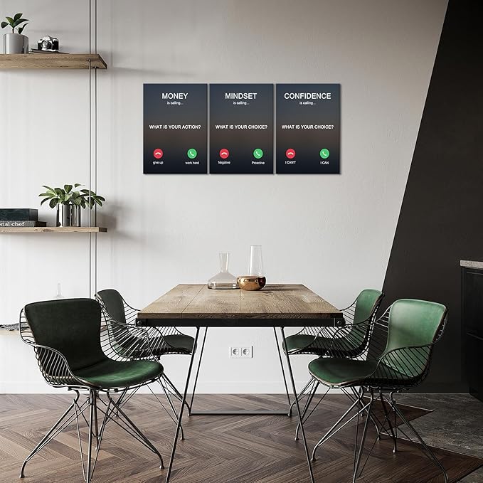 KAWAHONE 3PCS Motivational Canvas Wall Art, Positive Affirmation Poster -Money is calling Mindset Confidence -Inspirational Quotes Posters for Home Office Workplace Ready to Hang