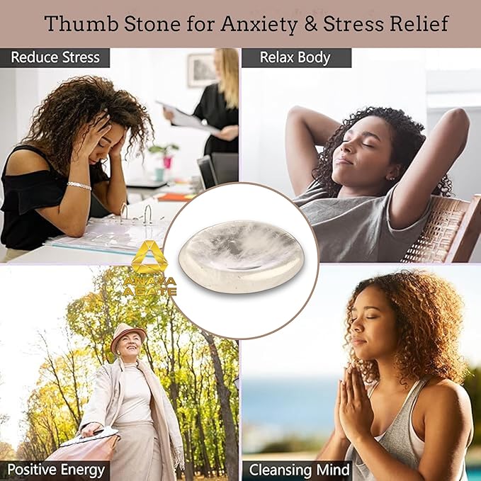 Clear Quartz Worry Stones – Crystal Thumb Worry Stone for Anguish, Stress – Relaxing and Soothing Balance Stones for Meditation, Stress Relief – Healing Stones and Crystals for Men and Women