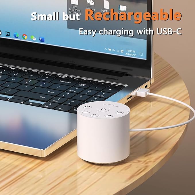 - ❤【Long Battery Life & Portable Design】: With well-designed batter and USB charging cable, you can use this sound machine either plugged in or unplugged. No more power outages to worry about. The hanging rope allows you take it anywhere without being limited by space.