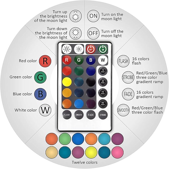 - Remote/Touch/Tap Control: Touch the metal ring or tap the ball to switch 16 colors, remote control to switch 16 colors and adjust brightness. And it also support one color or colorful automatic conversion and timed lights off.