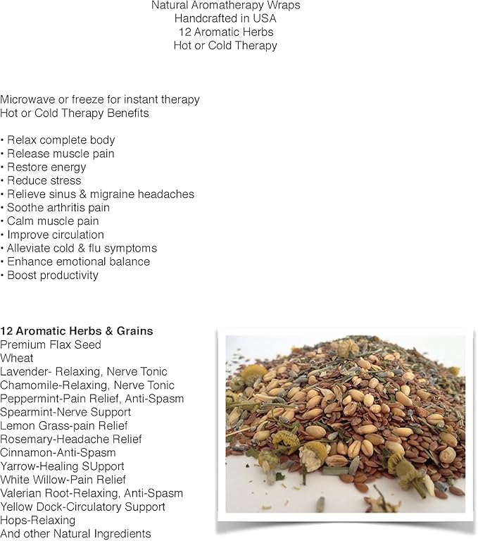 - ALL NATURAL - 100% Natural herbs and flax seed, Filled with 12 natural herbs and other aromatic ingredients - Made in the USA from soothing natural herbs like lavender and others.