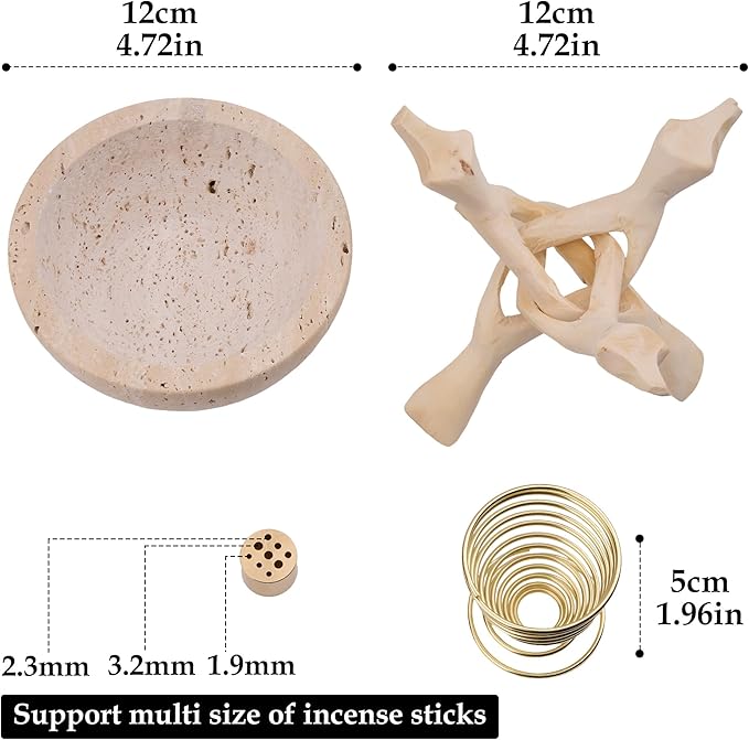- 【What You Will Receive】: Includes 1 pc 4.72-inch travertine incense holder, 1 pc hand-carved wooden stand, 1 pc palo santo holder, and 1 pc nine-hole incense burner. Please note: White sage bundle and palo santo incense sticks are not included in the package.
