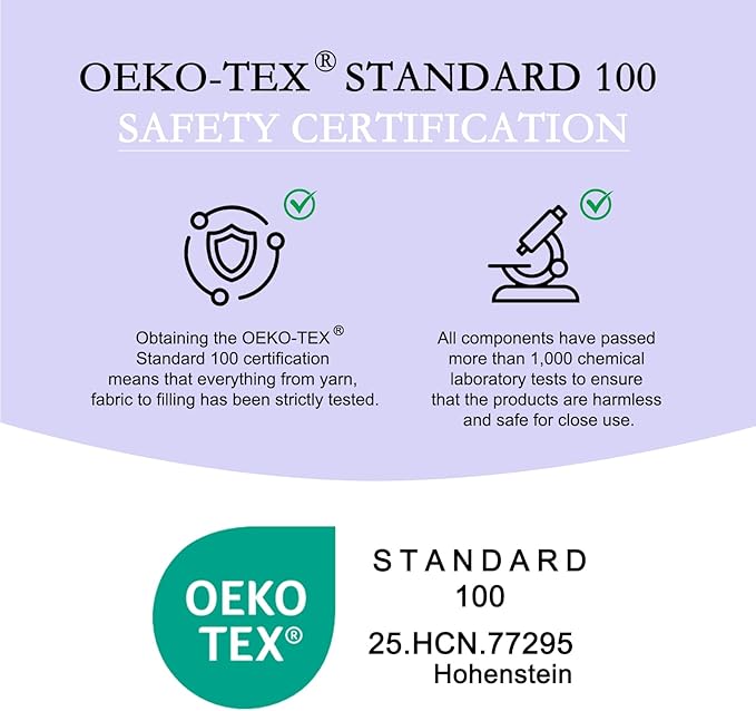 - 【OEKO-TEX Certified Materials】All components are OEKO-TEX Standard 100 certified, ensuring that the fabric and filling are safe, eco-friendly, and free from harmful substances.