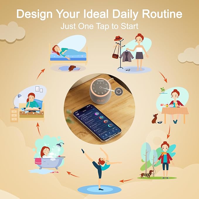 White Noise Sound Machine for Sleeping, 361 Soothing Sounds, Smart APP Control, Custom Buttons, Non Looping Natural Sounds, Bedside Dimmable Clock, Night Light, Santebee for Adults Baby Kids Lullaby