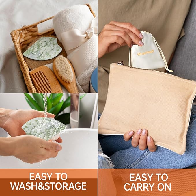 • 【100% Premium Ice-Cool Jade Stone】Made from hand-polished natural cooling jade stone, this tool is perfect for tackling morning puffiness and sun-stressed skin, while enhancing radiance through natural cooling. It promotes skin radiance, tightens pores, and preps skin for flawless makeup application.