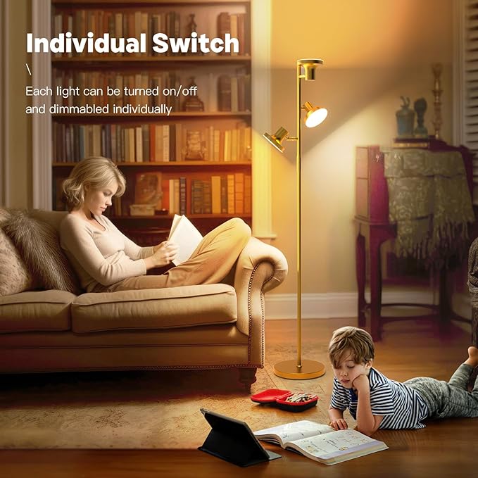 - Remote Control & Individual Switch -- Remote and touch control both can turn the standing lamp on and off, and adjust the brightness or color temperature as you wish. You can turn off the light and go to sleep without getting up. At the same time, it is compatible with smart plugs and wall switches in your home for voice and APP controlled switching.Each light can be turned on or off individually. You can turn on all the lights for bright lighting or turn off 1-2 lights for reading or bedtime.