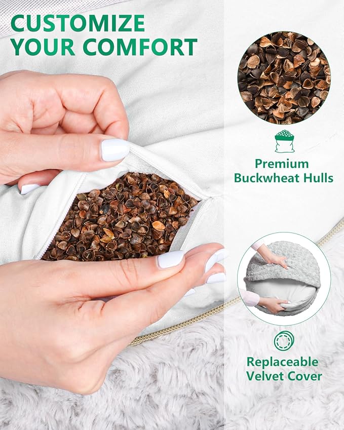 - Luxurious Rose Velvet & Natural Buckwheat Filling: Features a soft, premium rose velvet cover for a plush feel and elegant look, while the natural buckwheat hull filling provides adjustable firmness and stable support for spine alignment