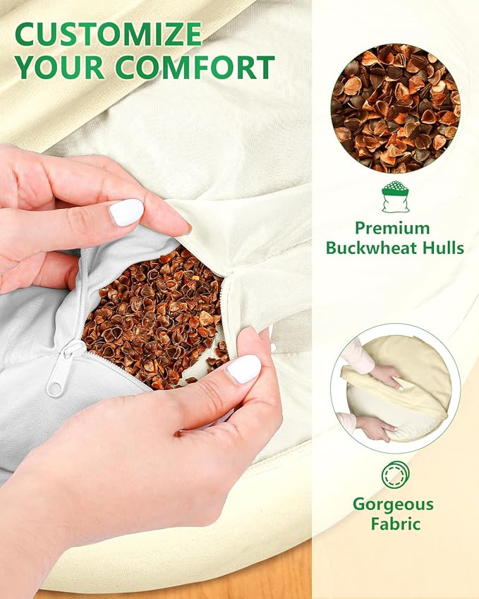 - Luxurious Velvet & Natural Buckwheat Filling: Features a soft, premium velvet cover for a plush feel and elegant look, while the natural buckwheat hull filling provides adjustable firmness and stable support for spine alignment