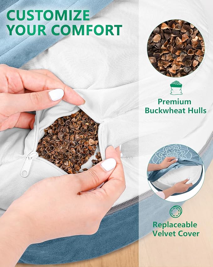 - Luxurious Velvet & Natural Buckwheat Filling: Features a soft, premium velvet cover for a plush feel and elegant look, while the natural buckwheat hull filling provides adjustable firmness and stable support for spine alignment