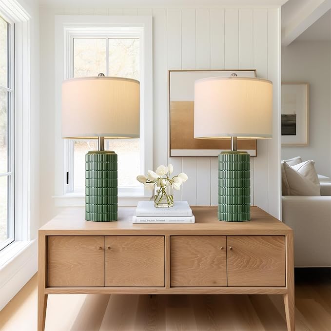 - Ideal Present and Decor: Elevate your home decor with Pokat green living room lamps, which also serves as a perfect decorative piece. This table lamps set of 2’ modern design add character and warmth to any space, creating a chic and inviting ambiance. Whether placed on a nightstand, bedside in bedroom or on end table, console table, hallway in the living room, this table lamp for bedroom house decor effortlessly enhances the overall aesthetic. To showcase your refined taste in decor, this modern and farmhouse lamps makes an ideal gift for housewarming, birthday, anniversary, wedding to her, friends, wife, women, mother, grandmother and men.