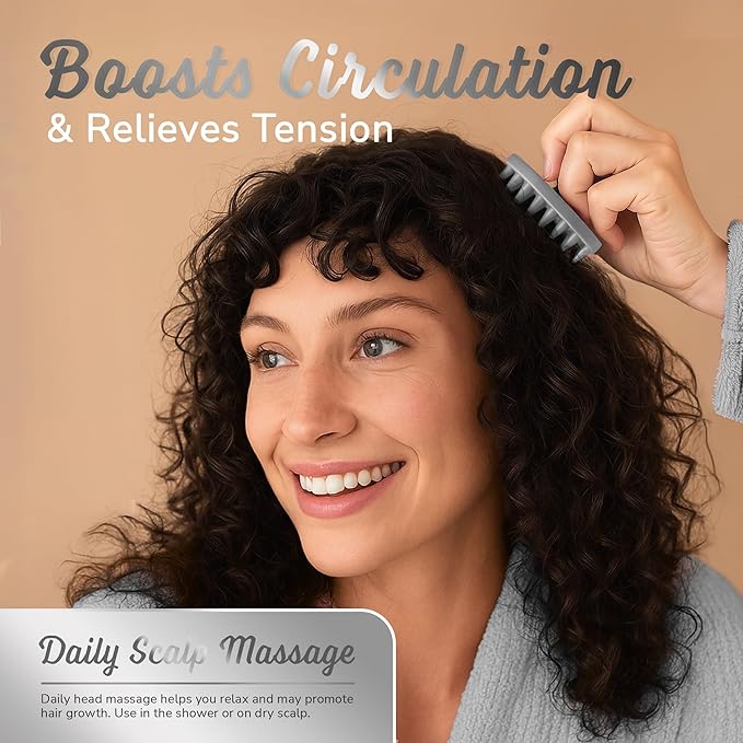 - Non-slip ergonomic handle for easy control — a balanced, palm-fitting grip stays steady in wet, soapy hands and works with either hand for a relaxed, consistent massage - your everyday scalp massage brush.