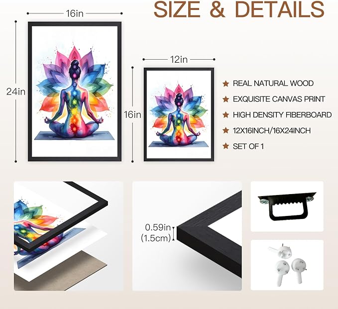 - Zen Wall Art: Bring peace and harmony into your space with this 16x24 inch zen wall art decor, featuring a meditative yoga pose surrounded by vibrant chakra colors and a blooming lotus mandala. This spiritual canvas beautifully illustrates the flow of energy through the body’s chakra points. Ideal for yoga lovers, spiritual seekers, or anyone practicing daily mindfulness, the design encourages you to inhale calm and exhale stress—perfect for creating a soothing atmosphere in your home.