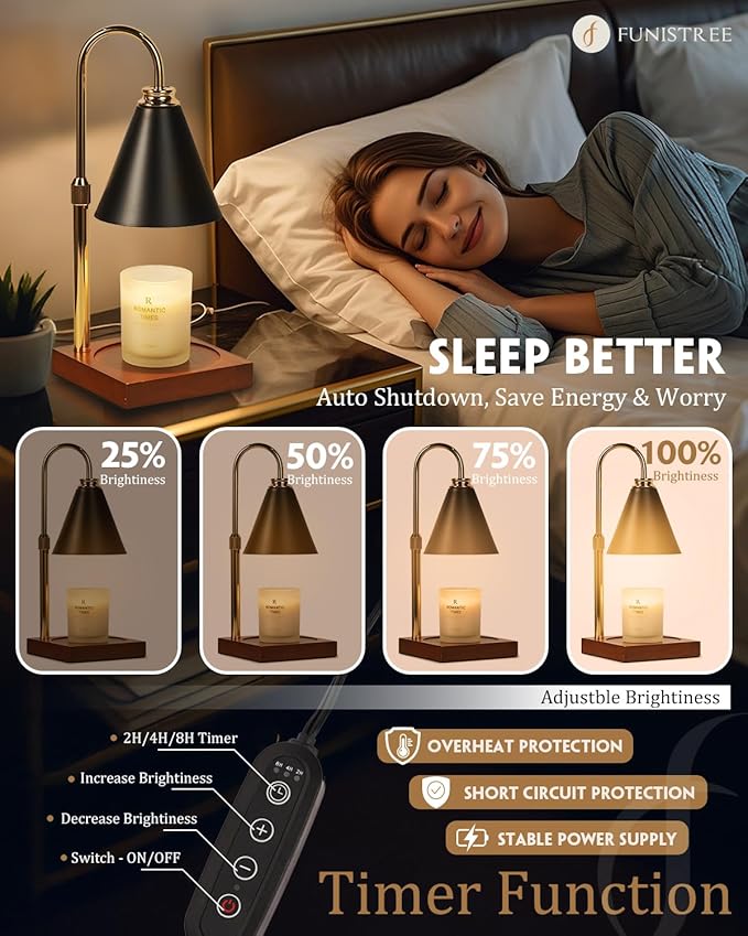 - Safe heating: This candle warmer lamp with timer uses 2 included 50W bulbs to melt wax without burning candles, no smoke or soot—keeping your air clean and your home safe. Set the convenient 2/4/8-hour timer for worry-free operation, eliminating the danger of forgotten candles. A truly carefree way to enjoy your favorite fragrances