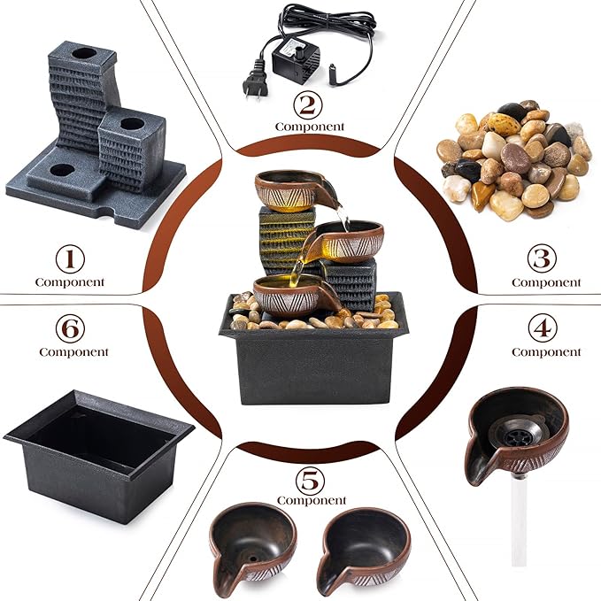- Indoor decorative fountain: 3-Tier ingenious design creates a soothing water flow, accompanying you to sleep or bringing you tranquility and relaxation. It can also help increase the humidity of the surrounding air, making it an ideal choice for adding a touch of Zen and decoration to anywhere.