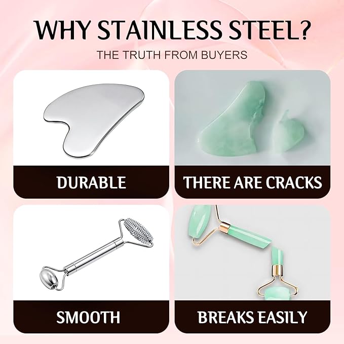- 【Quality Material】: This gua sha tool and facial roller are made of high-quality stainless steel. They offer high stability, reduce friction, and provide support for sensitive skin.